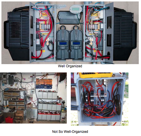 Further, many of these panels can be ordered pre-wired.  With a pre-wired panel electrical connections are reduced to connecting equipment at labeled terminals alleviating complicated wiring that is common to battery-based PV systems and helping to reduce wiring mistakes.  Pre-wired panels are almost plug-and-play.  Of course, conductors must be chosen appropriately based upon manufacturers’ specifications for each of the components and local electric codes and standards.
